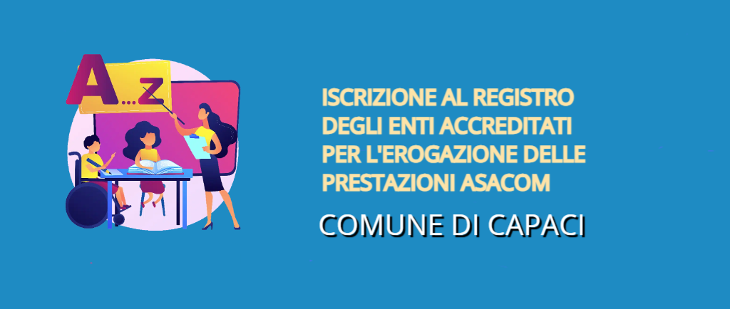 Con pubblico avviso il Comune di Capaci ha annunciato a partire da oggi  l’apertura delle iscrizioni al Registro degli Enti Accreditati per l’erogazione delle prestazioni di Assistenza all’Autonomia e/o alla Comunicazione (ASACOM) per gli anni scolastici 2025/26, 2026/27 e 2027/28. Questa iniziativa, in linea con le leggi 104/92 e 328/2000, mira a promuovere l’integrazione scolastica degli alunni con disabilità, frequentanti le scuole dell’infanzia, primaria e secondaria di primo grado.