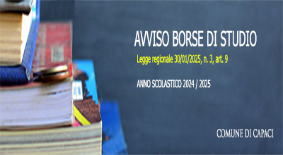 Nell’ambito degli interventi e programmi con finalità sociali previsti dalla Legge regionale 30/01/2025, n. 3, art. 9, il Comune di Capaci con pubblico avviso rende noto che è stato concesso un contributo di € 25.000,00 per l’erogazione di borse di studio destinate agli studenti più meritevoli residenti a Capaci che hanno frequentato nell’Anno Scolastico 2024/2025 le Scuole Secondarie di Primo e Secondo Grado.